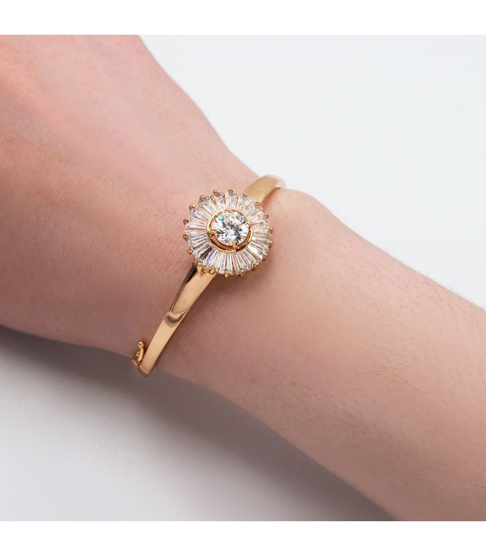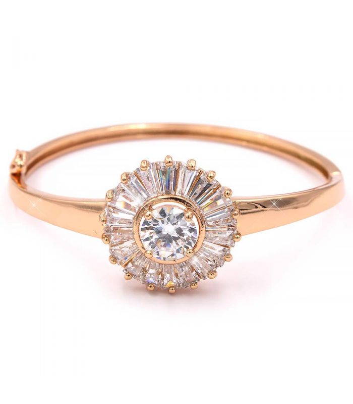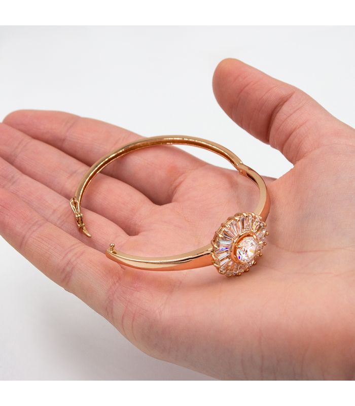 Браслет жесткий позолота "Цветок из прямоугольных камней"