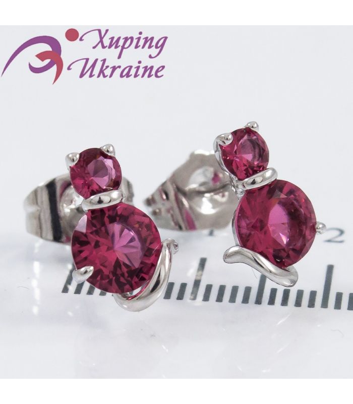 Сережки-гвоздики родіум "Кіт" (2 камені)
