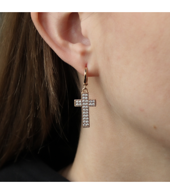 Сережки Xuping "Хрестики в подвійному камінні" лимонна позолота (медичне золото)